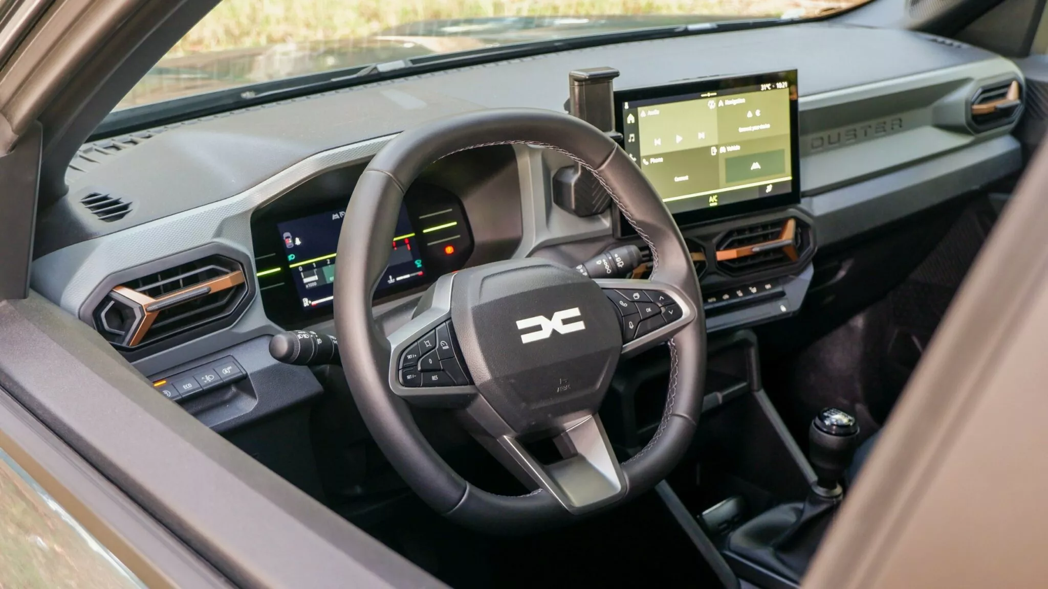 Интерьер предыдущего Duster начал устаревать, поэтому дизайнеры Dacia приложили немало усилий, чтобы модернизировать его. Новая приборная панель выглядит так же брутально, как и экстерьер внедорожника, и оснащена современными технологиями, хотя это не относится к базовой комплектации.