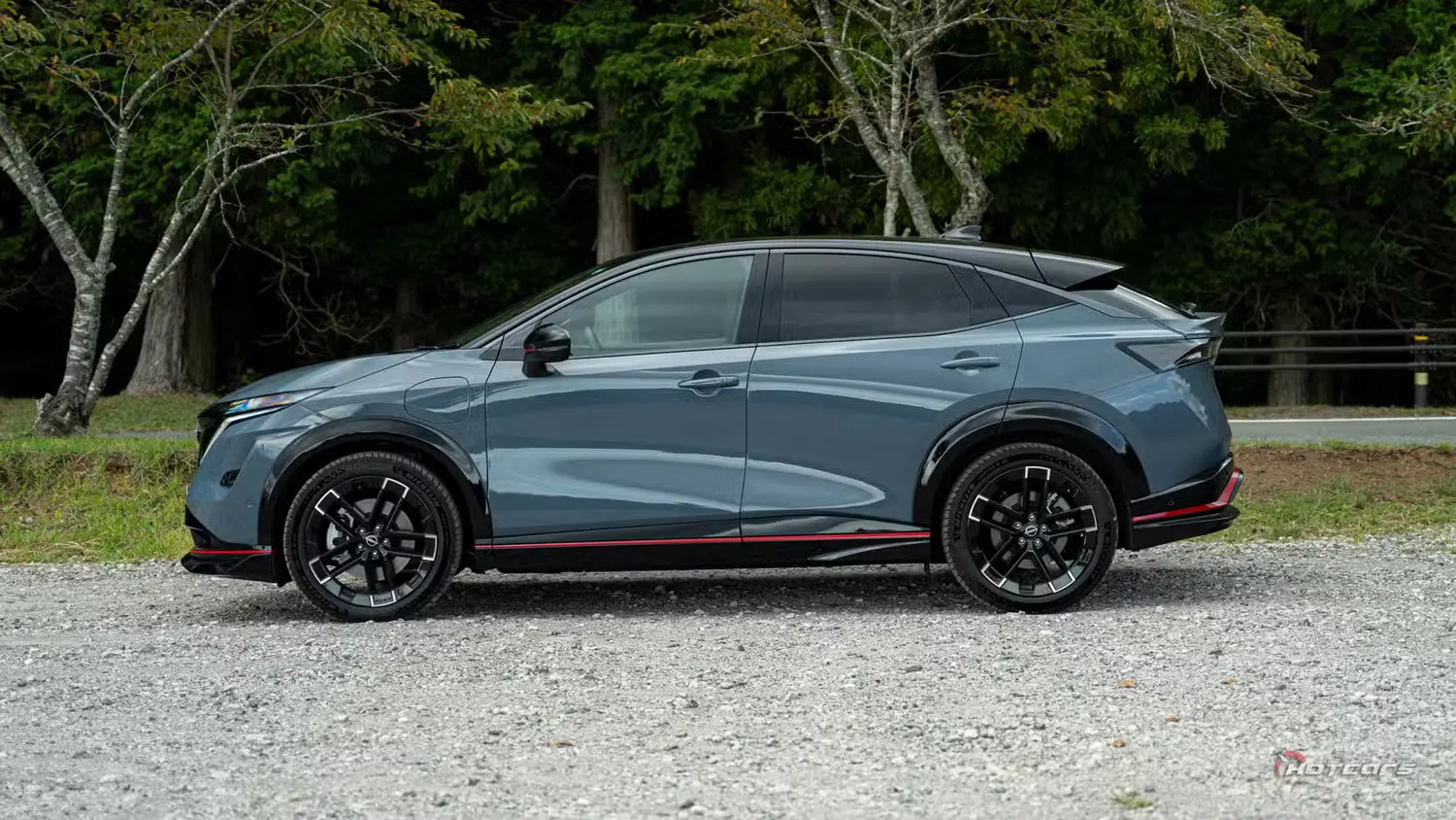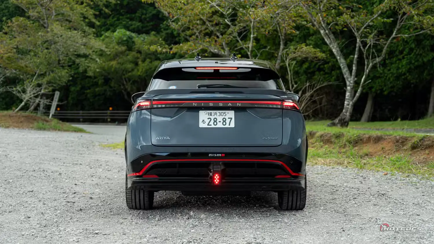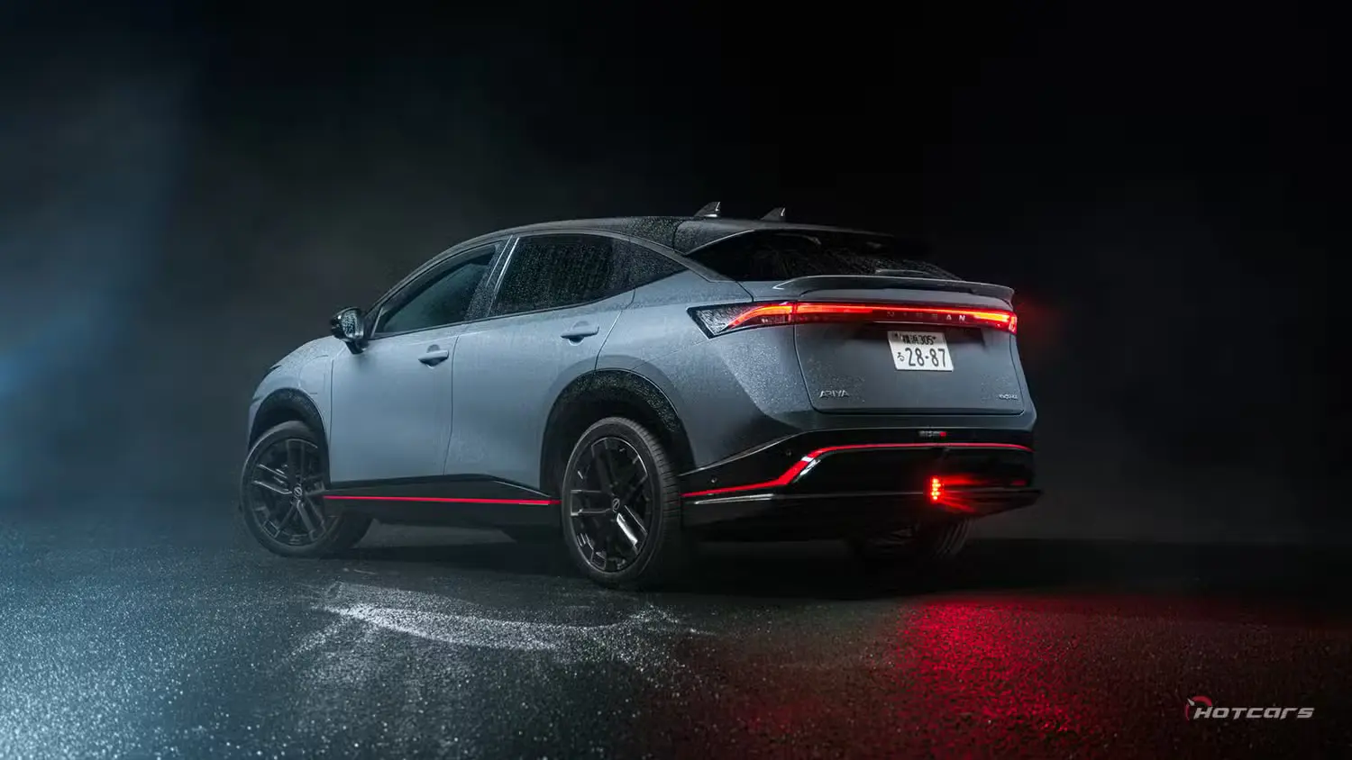 Ariya Nismo также получает новый комплект спортивных 20-дюймовых колёс от Enkei. Серый цвет кузова в сочетании с красными акцентами по всему автомобилю подчёркивает спортивный стиль Nismo. Сзади Ariya Nismo оснащена задними противотуманными фарами, которые обычно устанавливаются на все автомобили Nismo.