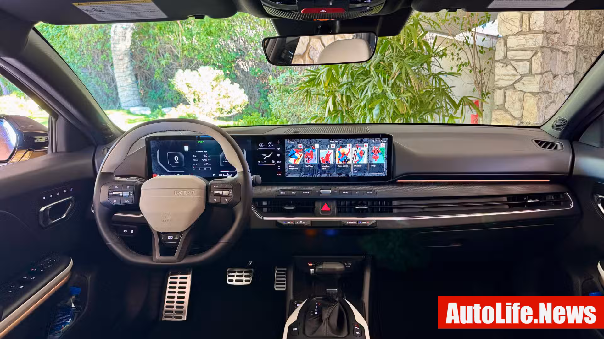 Несмотря на то, что Kia K4 — доступная модель, в ней реализовано большинство интересных и функциональных технологий. Все комплектации оснащены 12,3-дюймовым сенсорным экраном в сочетании с 5-дюймовой приборной панелью. В комплектации GT-Line Premium Package установлена более привлекательная 12,3-дюймовая цифровая приборная панель. Информационно-развлекательная система Kia имеет интуитивно понятное меню, в котором легко ориентироваться. По-сравнению, в комплектациях более высокого уровня теперь доступны загружаемые темы оформления, которые меняют цвет и детализацию экрана. Пользователи могут загружать темы от Disney (включая Pixar и Marvel), National Geographic, NBA и других. На нашем K4 была установлена тема «Человек-паук», которая не только изменила оформление меню в стиле комиксов, но и заменила значок навигации на символ Человека-паука, а цвета индикаторов — на красный, белый и синий. В теме «Звёздные войны: ситхи» тахометр и спидометр были заполнены красными световыми мечами.