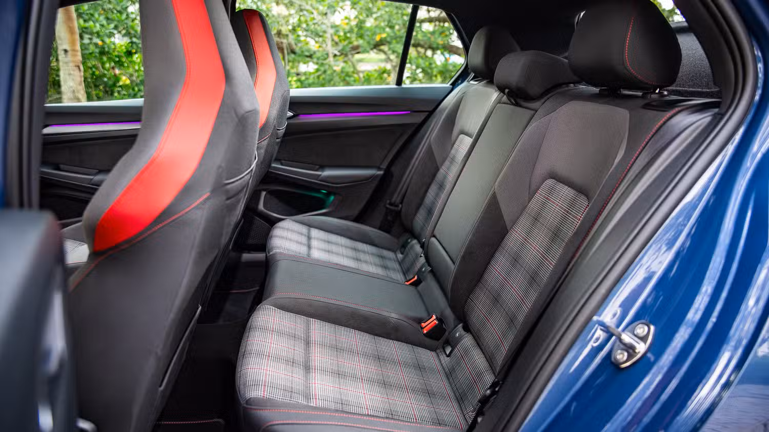 В комплектацию GTI входят спортивные сиденья с функцией подогрева, но мне не хватало вентиляции. Она есть в комплектации SE и выше, так что неудивительно, что в базовой комплектации нет такого удобства. В любом случае, клетчатая обивка сидений компенсирует этот недостаток, а красная вышивка GTI на спинках сидений добавляет немного стиля.